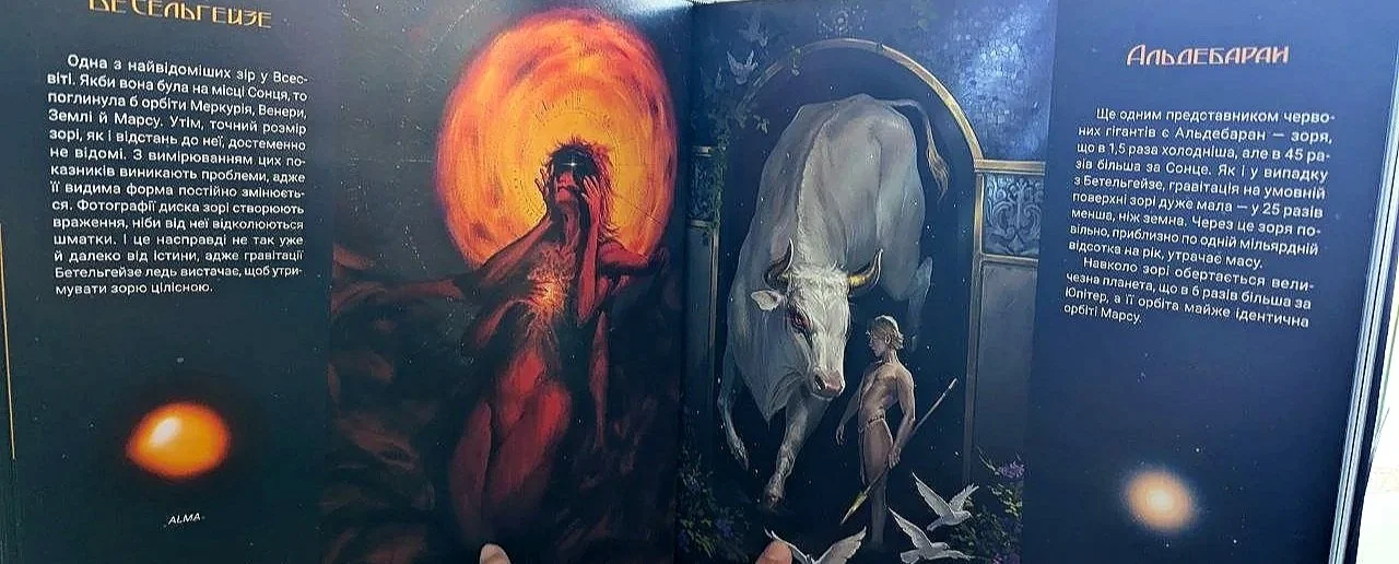 The book contains a collection of 212 illustrations from different authors depicting the objects and phenomena of our vast known universe. Some profit from sales was donated to Ukrainian volunteers and various funds.